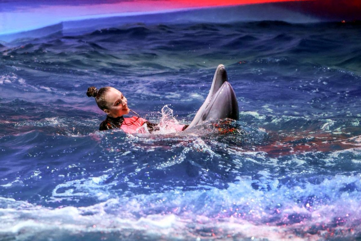 После выступления можно искупаться и сфотографироваться с артистами, а также, прокатиться на лодочке, управляемой дельфином.